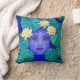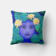 Krishna Lotus Pillow. The blue face of the Krishna reflected in a lotus pond. Pillow from art by Sue Halstenberg