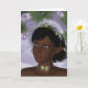 KRW Floral Fairy Fantasy Blank Card. Lovely African American fairy with flowers in her hair against a lavender moon fantasy background
