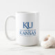 This logo represents the University of Kansas, combining the "KU" monogram prominently above the full name "The University of Kansas." The design uses a traditional serif font in a deep blue color, symbolizing stability, academic excellence, and the university's heritage. The large "KU" creates instant recognition, while the full name reinforces the institution's identity and reputation.