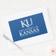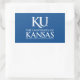 This logo represents the University of Kansas, combining the "KU" monogram prominently above the full name "The University of Kansas." The design uses a traditional serif font in a deep blue color, symbolizing stability, academic excellence, and the university's heritage. The large "KU" creates instant recognition, while the full name reinforces the institution's identity and reputation.