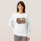 I love this shirt. I had written to the artist asking her if this picture was available on a shirt, and she wrote me back telling me where I could find the shirt. These shirts can be custom made to have a different saying. I loved this saying and went with it. The artist wrote me back later to tell me that she had seen my order go through. How's that for service? Pretty special. It's just as displayed. Perfect!