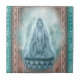 Bordered image of Kuan Yin, goddess of compassion in colors of teal, blue and brown
