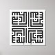 Kufi square calligraphy design with black and white colors combination. Ready to hang - no framing needed! Perfect for the Muslim home - may it bring blessings to you always. Originally designed by Ed Mohamad a.k.a. Zamrudi Che Mohamad from Syled Studios.