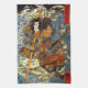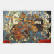 Kuniyoshi Samurai kitchen towel. Ukiyo-e woodblock from Edo Period Japan. Utagawa Kuniyoshi designed some of the most vibrant and impressive samurai paintings of the Edo period. His depiction of Shimamura Danjo Takanori features the samurai in full armor wielding his naginata while riding the waves of the sea on the backs of two blue crabs. The samurai has been hit by multiple arrows, but fights on fiercely with waves and crabs rising in the background. A great gift for fans of Utagawa Kuniyoshi, samurai paintings, and Japanese art.