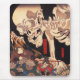 Kuniyoshi Skeleton mouse pad. Ukiyo-e woodcut from 1845 Edo Period Japan. Utagawa Kuniyoshi was one of the last great masters of ukiyo-e style, and Mitsukini Defying The Skeleton is one of his most recognized and celebrated works. The woodcut features the hero Kuniyoshi drawing a swords against a giant skeleton looking ominously down on him. A beautiful and frightening gift for fans of Utagawa Kuniyoshi, Skeleton paintings, and Japanese art.