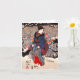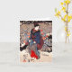 Kuniyoshi Three Women note card. Ukiyo-e from Edo Period Japan. One of Utagawa Kuniyoshi’s most famous works, Three Women is a three paneled woodblock design depicting three Japanese women standing beside a tree on a snow covered day. Red winter flowers bloom forth magically, and all three women are appareled in traditional Japanese dress with wooden clogs. One woman carries a Japanese umbrella. A pretty gift for fans of Utagawa Kuniyoshi, Ukiyo-e, and Japanese art.