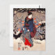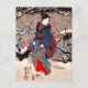 Kuniyoshi Three Women postcard. Ukiyo-e from Edo Period Japan. One of Utagawa Kuniyoshi’s most famous works, Three Women is a three paneled woodblock design depicting three Japanese women standing beside a tree on a snow covered day. Red winter flowers bloom forth magically, and all three women are appareled in traditional Japanese dress with wooden clogs. One woman carries a Japanese umbrella. A pretty gift for fans of Utagawa Kuniyoshi, Ukiyo-e, and Japanese art.