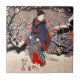 Kuniyoshi Three Women tile. Ukiyo-e from Edo Period Japan. One of Utagawa Kuniyoshi’s most famous works, Three Women is a three paneled woodblock design depicting three Japanese women standing beside a tree on a snow covered day. Red winter flowers bloom forth magically, and all three women are appareled in traditional Japanese dress with wooden clogs. One woman carries a Japanese umbrella. A pretty gift for fans of Utagawa Kuniyoshi, Ukiyo-e, and Japanese art.