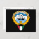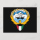 The emblem of Kuwait (Arabic: شعار الكويت) was adopted in 1962 and it consists of the shield of the flag design in color superimposed on a golden falcon with wings displayed. The falcon supports a disk containing a boom sailing ship, a type of dhow, with the full name of the state written (in Arabic) at the top of the disk.