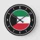 Kuwait Flag Elegant Round Clock with the Kuwait flag positioned in the middle and lovely white clock numbers on the clock edge. Delightful black background with the white oval elements finalize the design putting emphasis on the elegance. Beautiful combination of black and white with the skillful integration of the national flag colors make this clock the perfect gift and the great show piece on the wall. © 2022 CountriesOfTheWorld