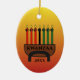 Personalize this Kwanzaa holiday ornament with your own text on both front and back. Image design of seven candles in traditional red,green and black on a soft yellow and orange gradient background.. Part of a collection of coordinating items in this same design at Monograms and Monikers on Zazzle.