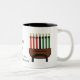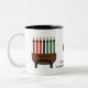 Personalize this Kwanzaa holiday mug with your own text. Image design of seven candles in traditional red,green and black on a white background.. Accented in the center with a flourished heart doodle.Part of a collection of coordinating items in this same design at Monograms and Monikers on Zazzle.