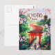 In this dreamy illustration, the Fushimi Inari-taisha shrine's iconic tunnel of thousands of bright red torii gates winds dramatically up a wooded hill. In the foreground, stylized cherry blossom branches frame the scene, with delicate pink and white petals suggested by flowing brushstrokes. The light is soft and diffused, creating a mystical and serene atmosphere. A small, contemplative figure is suggested in the distance. The background shows a cluster of traditional wooden buildings with tiered roofs. The overall composition is artistic, modern, and impressionistic, capturing the spirit of this historic and enchanting city.