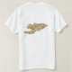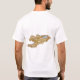 An editable title and slogan accompanies the yellow circular motif centered on a red background of the Kyrgyz flag on the front of this t-shirt. The back displays a detailed map of Kyrgyzstan.