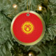 Both sides of this ornament feature the flag of Kyrgyzstan morphed into a circle with a golden rim. Simple Kyrgyz decoration for your home.