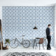 (L) 2502223B Retro Geometric Tiles Blue Wallpaper