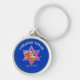 Stylish Israeli blue ROSH HASHANAH keychain, showing a Star of David with a bowl of apples and a dish of honey. Above is the greeting L'SHANAH TOVAH, written in white and faux gold typography, followed by ROSH HASHANAH in Hebrew text at the bottom. In the background is a subtle tiled pattern saying Rosh Hashanah. ALL TEXT (excluding background text) IS CUSTOMIZABLE, so you can replace with your preferred text and spellings (eg. Shana Tova). This would make a great favor giveaway to celebrate Jewish New Year. Choose from a wide selection of Jewish celebration gifts designed by Berean Designs.