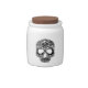 The art on this jar was inspired by Day of the Dead sugar skulls. The jar can be used to warn others away from your favorite cookies and candy, store small objects, or be a decorative piece for your shelf or desk.