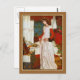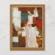 Beautiful 19th century painting by William Morris called La Belle Iseult and featuring a beautiful Renaissance woman in her bedroom looking at her bureau as she gets dressed. Vivid and bold colors.