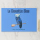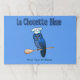 A blue owl wearing a chef's hat while perched on a wooden spoon, and French text reading La Chouette Bleue (The Blue Owl); the logo of the bakery and cafe. Delicious baked delights and food from the United Kingdom, Europe and around the world. Stop in and see us. Customise by adding your own additional text.