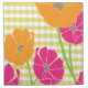 Bright and cheerful spring flowers and gingham design. La De Da Gingham Cocktail Napkin 12 x 12 set of 4