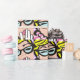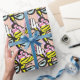 Gift giving just got a whole lot more fun with this La-Di-Da Lady Pop Art Wrapping Paper. The design features the repeating pattern of a delightfully quirky woman with blonde hair piled on her head wearing cat-eye glasses and a pink and white zebra print collar. One white gloved hand is resting on her pink lips as if she is suppressing a giggle.
