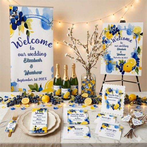 This "La Dolce Vita" design will turns your bridal shower into wonderful Italian tale. Feel the magic of the Mediterranean blue and Tuscan yellow, lemons and olives.