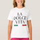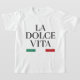 Celebrate Italian elegance with this “La Dolce Vita” t-shirt, featuring classic black lettering and the iconic green and red accents inspired by the Italian flag. Perfect for lovers of Italy, travel enthusiasts, and anyone who embraces the spirit of living well, this comfortable tee brings timeless style and positivity to your wardrobe. Ideal for casual outings, holidays, or gifting to anyone who dreams of the sweet life.