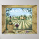 Through the weathered stone window, enjoy this idealic scene. The artist creates a soft villa and vineyards picture, but shows her passion for detail in the Chianti Classico bottle, glass of red wine and clover flowers on the ledge. Acrylic on masonite. 18" x 22"