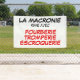 Trois mots synonymes de Macronie!!! Design on white outdoor banner.