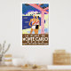 Vintage Art Deco travel poster for the beach at Monte Carlo, Monaco, on the riviera.