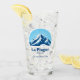 Beer glass from La Plagne, France with a gorgeous blue mountain with a sunny background and the option to add text.