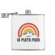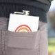 Well made flask, a little better than I had expected. Flask came in clear plastic box which gave it a nice presentation when I took it out of the zazzle packaging. Image is not printed on flask but on sticker. Don't know how this will hold up I haven't used it yet. This would make a Great gift! I plan to purchase more for friends! Cheers. I thought a little brighter than computer. Very crisp, writing wasn't