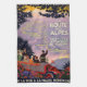 La route des Alpes Services automobiles de tourisme de la mer à la haute montagne. Travel poster for France showing a tourists and tour guide in a PLM (Compagnie des chemins de fer de Paris à Lyon et à la Méditerranée) tourbus with route from Nice to Evian and beyond.