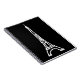 The Eiffel tower. White stylized illustration. The background color is customizable