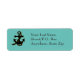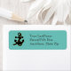Ship's anchor in black with gold outline, against a sea green background. Personalize with your name/address information (also in white).
