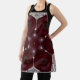 Great color and even though I ordered the kid size, it covers well enough to use during the holidays. I am not a big woman and prefer a shorter apron. I stand 5"6" and the length of the garment goes to mid-thigh. The tie straps fit well at my waist and even though there is no neck strap adjustment, the opening is plenty big enough. I am happy with the size and fit. I am sharing my apron with my 10 year old grandson, too! The color is vibrant and looks good, as shown on the website. The stitching looks strong and reinforced. Photographed is front side and back side of the apron, reinforced straps and coloring. My phone camera may not be the best at showing the details.