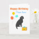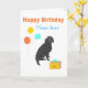 A black dog, balloons a gift, Happy Birthday, add name to front, and your text inside, Birthday card for any person.