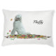 LOVE, love, LOVE this doggy pillow/bed. I purchased this dog bed a few years ago, in a different design, so I know it is a quality dog bed. The cover zips off for easy laundering and it doesn't shrink or pill after multiple machine washings. I use it at the end of the chaise section of my sofa as a bed for my dog and to help keep the sofa clean where she lays. I uploaded this photo design with her name and a picture of her sleeping on another pillow on our bed, with waves added in because I just know she's dreaming of being on the beach. When I received this new one, I replaced the old one on the sofa and Sara immediately laid down on it and knew it was for her. If you have a larger dog (Sara is about 25lbs) you'll want to order the larger size. Zazzle's printing and colors are always perfect. I'm a photographer, and I know how I expect the colors to come out, and they always do with Zazzle.