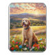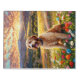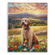 Labradoodle dog in beautiful field of flowers with sunset. Puzzle in a Tin, Puzzles, puzzles in tins, planners, notebooks with this design in my stores. Add text to personalize.. Lots of pet and scenery designs in my stores. Add this design to other products. Add text.