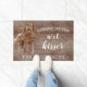 Funny beware of the wet kisser" Labradoodle Dog door mat set on a rustic faux background. Visit our shop to view a large assortment of dog breads