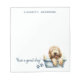 Cute dog watercolor illustration of a happy fluffy Labradoodle dog in a bathtub. Great for dog lovers. Ready to be personalized with your name on top and the bottom says "Have a great day!" which can be changed if you want. Great for dog lovers, poodle owners, dog groomers, dog sitters, and veterinarians.