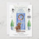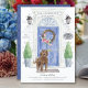 Announce your new address with our stylish announcement featuring a Labradoodle, blue front door, welcome mat, slate sign, topiaries and a floral wreath set on a gray brick background.