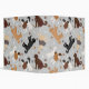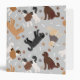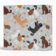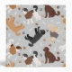Cute Labradoodle / Goldendoodle dogs sit and stand and rollover with cream, apricot, chocolate, black and parti coats with scattered dog bones and pawprints pattern.