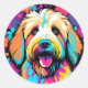 Labradoodle Pop Art Dog With Flowers Classic Round Sticker