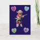 A cute dog Valentine's Day card featuring a Labradoodle playing guitar surrounded by candy hearts.