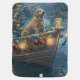 Set sail into the magic of the holiday season with this beautifully detailed illustration, showcasing a proud dog sitting in a festively decorated boat, gliding across a serene Christmas lake. The twinkling lights from nearby pine trees reflect off the water, casting a warm, festive glow that enhances the cozy ambiance. Ornaments dangle from the boat's sides, while glowing lanterns light the way, creating a scene that captures the true essence of Christmas warmth and joy. This nostalgic artwork brings a touch of holiday magic to any space, perfect for those who cherish the spirit of the season.