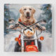 Labrador Dog Riding Motorcycle Christmas Square Wall Clock