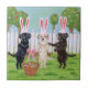 Whimsical and funny Easter Labrador Retriever Painting painted by Naomi Ochiai from Japan. Black Lab and Yellow Lab and Chocolate Lab are painted in the picture. Three Labrador Pups are wearing Bunny Ears on their heads and posing for Easter photo shooting with the colorful painted eggs in the baskets. Painted in soft spring tone. Nice Easter gifts for dog lovers who love Labrador Retriever dogs!! You can customize text as you like. Remove sample text and insert yours.