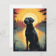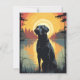 Labrador in the forest during sunset holiday card